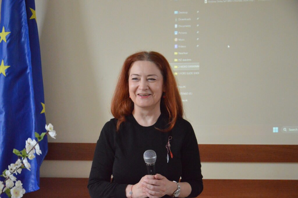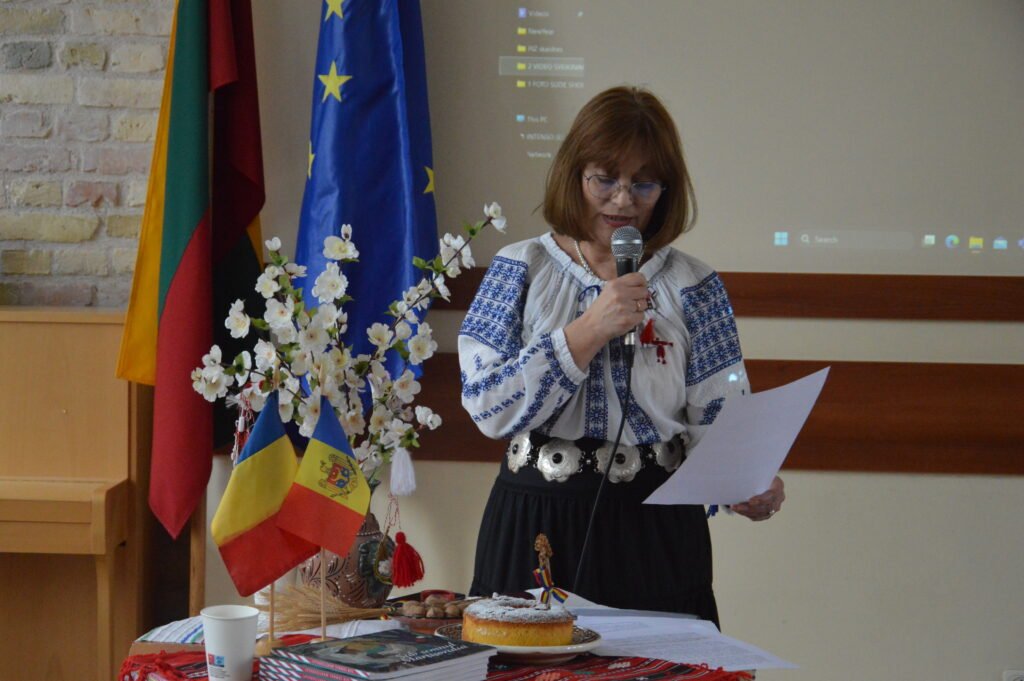 Atkeliavo sveikinimas iš Kišiniovo. Departamento ryšiams su diaspora direktorė Violina Donu atsiuntė vaizdo sveikinimą, kurį išklausė renginio dalyviai.