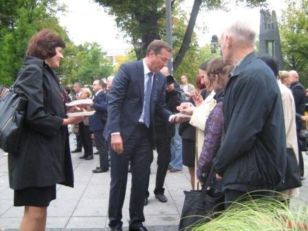 Renginio metu Vilniaus miesto meras A. Zuokas tradiciškai vaišino renginio žiūrovus lietuviška duona.