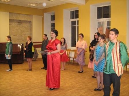 Jaunųjų aktorių sceninę kompoziciją sudarė penkios dalys: spektaklio pagal Žano Anujo pjesę “Orkestras” fragmentai, muzikinė-poetinė kompozicija “Esė apie meilę”, inscenizacija pagal N.Gogolio romaną “Mirusios sielos” , teatrinės improvizacijos bei ištraukos iš monospektaklio “Aisedora ir Jeseninas”.