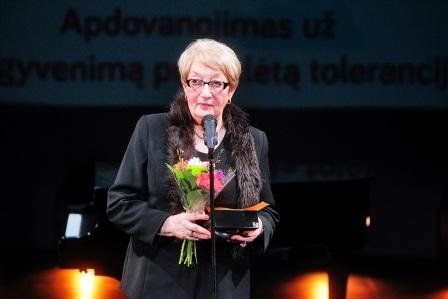 Už visą gyvenimą puoselėtą toleranciją apdovanojimas įteiktas dr. Halinai Kobeckaitei, ambasadorei, pirmajai Tautybių departamento prie LRV direktorei.
