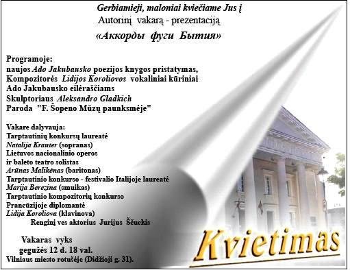 naujos Ado Jakubausko poezijos knygos pristatymas,
