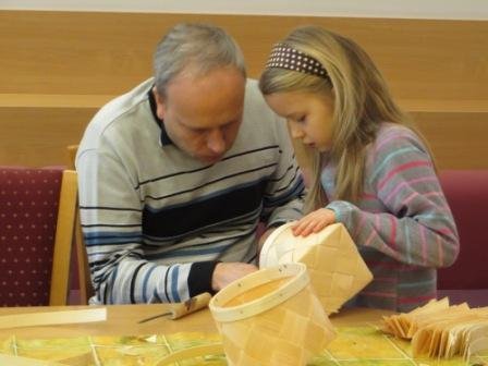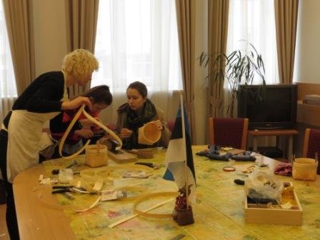 Viešnia iš Avinurme mieto (Estija) Eveli Tooming, atstovaujanti firmą „Strauss“ mokė jaunuosius Lietuvos estų draugijos narius pinti tradicinius estų krepšelius iš įvairių medžių karnų.