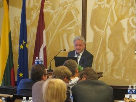 Pranešimą apie 1918m. lapkričio 18 d. nepriklausomybės paskelbimo akto istorinę ir teisinę reikšmę skaitė Latvijos universiteto Teisės teorijos ir istorijos katedros vedėjas prof. Janis Plepas.
