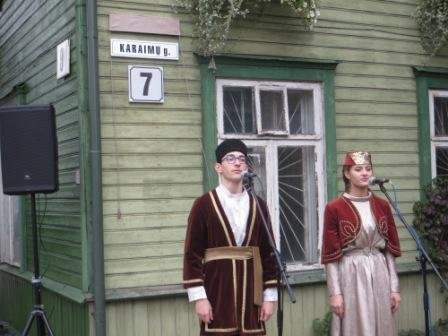 Dekoratyvinės lentelės atidengimo ceremonijoje jos dalyviai išgirdo gyvą karaimų kalbą. Karaimų ansamblio“Birlik“ dalyviai skaitė karaimų poeto Simono Firkovičiaus (1897-1982) eiles karaimų ir lietuvių kalbomis.
