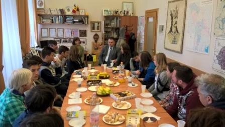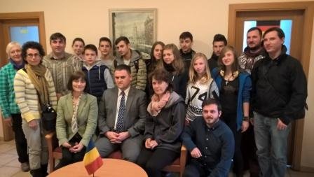 Tautinių bendrijų namuose moksleiviai susitiko su Nepaprastuoju ir įgaliotuoju Rumunijos ambasadoriumi Lietuvoje J.E. Dan Adrian Balanescu ir bendrijos „Dačija“ nariais.