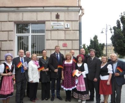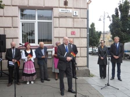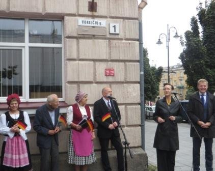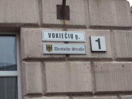 Ant Vokiečių gatvėje esančio namo Vilniaus senamiestyje, pažymėto pirmuoju numeriu, spalio 3 d. iškilmingai atidengta lentelė vokiečių kalba.