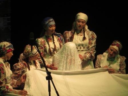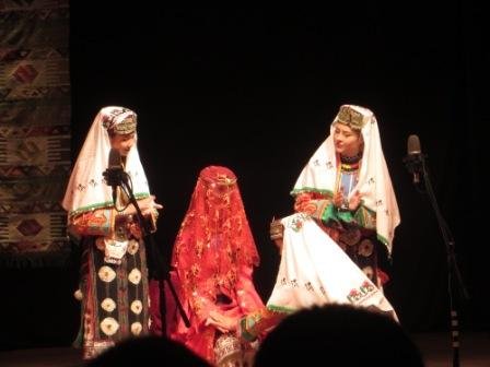 Pristatydama Kazanės totorių vestuvių tradicijas, Jelena Tračuk pabrėžė, kad tai totorių-mišarėjų apeigos. Būtent šita etninė grupė išsaugojo senovines mergvakario apeigas. Mergvakaris prasidedavo nuo suknelės kraštų siuvinėjimo. Jaunosios artimos draugės ir giminaitės ruošė nuotakos kraitį ir dovanas jaunikio giminėms. Pagal papročius jaunajai reikėjo gailiai raudoti, kad gyvenimas būtų laimingas. Jaunosios draugės atlikdavo apeiginę raudą, pati nuotaka tik aimanuodavo ir raudodavo. Šioje dalyje koncerto dalyviai pristatė tradicinius liaudies šokius, dainavo dainas. Įsimintinas Šamil Zainulino (Visagino totorių bendruomenė) šokis išsiskyrė savo azartiškumu, akcentuotais žingsniais bei lengvais šuoliukais. Totorių liaudies dainas atliko Kazanės konservatorijos absolventė, talentinga totorių folkloro pedagogė Lilia Ziganshina. Savo profesionalizmu žavėjo žmogus - orkestras Damir Gabdrakhmanov (Kazanė), totoriškas melodijas grojęs keliais instrumentais.