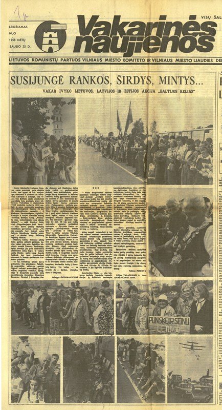 Šimtai tūkstančių Lietuvos žmonių vakar (1989 m. rugpjūčio 23 d.) susirinko prie didelio kelio, kad lygiai 19 val. susijungtų rankomis ir širdimis su bičiuliais Latvijoje ir Estijoje, kad visos trys Baltijos sesės vienbalsiai pareikštų tylų protestą prieš hitlerinės Vokietijos ir stalinistinės TSRS suokalbį, sudarytą 1939 metais ir savo sunkiomis pasekmėmis tebeslegiantį tautas. Iš kur tik nesuvažiuota, nesueita į šį Lietuvos Persitvarkymo Sąjūdžio, Latvijos ir Estijos Liaudies Frontų sušauktą Baltijos kelią. „Priimkite mus, nukentėjusius nuo abiejų šėtonų“, - rašė Punsko lietuviai. „Pageidaujame būti kartu“ – toks buvo įvairių tautybių Sniečkaus (dabar – Visaginas) gyventojų noras. „Visas pasaulis turi išgirsti mūsų laisvės ištroškusių širdžių plakimą“, - skelbė buvusių stalininių lagerių kaliniai.