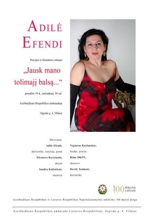Gruodžio 19 d. Azerbaidžano Respublikos ambasadoje vyko Adilės Efendi poezijos ir literatūros vakaras „Jausk mano tolimąjį balsą...“