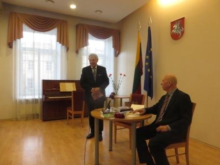 Kolegas sveikino Tarptautinės rašytojų ir publicistų asociacijos respublikinės draugijos prezidentas Levas Mesengiseris. Jis pasidalino įspūdžiais apie šiandien prasidėjusią Vilniaus knygų mugę ir apgailestavo, kad joje nėra knygų rusų kalba.