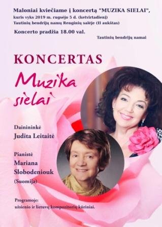 Maloniai kviečiame į koncertą "Muzika sielai", kuris vyks 2019 m. rugsėjo 5 d. (ketvirtadienį) Tautinių bendrijų namų Renginių salėje (II aukštas). Koncerto pradžia 18.00 val.