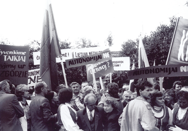 1989 m. rugsėjo 16 d. Šalčininkų rajono gyventojai, nesutinkantys su autonomijos paskelbimu, susitiko su SSRS liaudies deputataisA. Čekuoliu, M. Laurinkumi, A. Buraču, K. Motieka. Susitikimo metu buvo renkami parašai po rezoliucija dėl protesto prieš Šalčininkų rajono autonomiją.